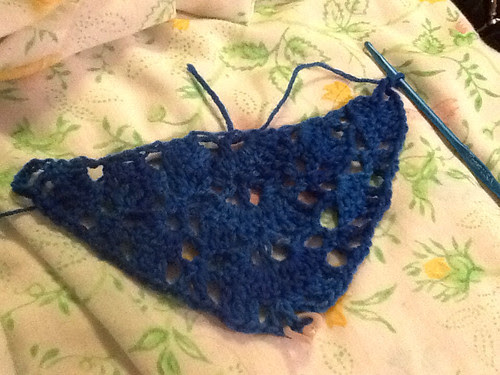 Shawls have been put on hold at the moment. The one I really need to be working on is on hold because the marked pattern is on the iPad I loan to my brother (oops) and I didn't realize it until he was gone. Oh well. I should get the iPad back this weekend so I can start again on the secret shawl. I've been sick with an upper respiratory infection and the meds have made it difficult to focus, so I'm thinking lace would not have been a good choice anyway.